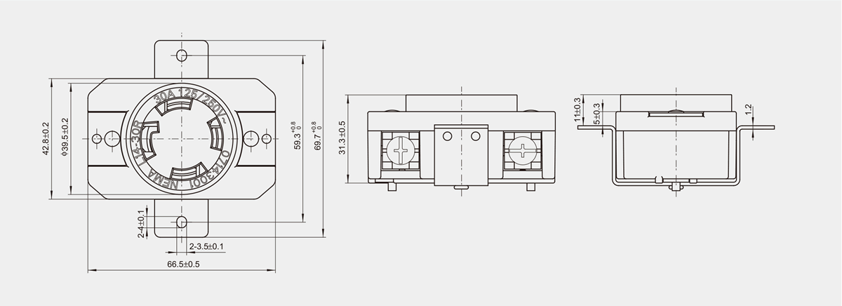 美式插座-L14-30R 所屬分類:插座、開關(guān)系列 > 汽車專用插座 13868759177 / 13868895688 / 13736999786 13868759177@163.com 聯(lián)系我們 產(chǎn)品應(yīng)用 技術(shù)參數(shù) 1、額定值:250VAC 16A; 125VAC 20A; 125/250VAC 30A; 2、接觸電阻:≤1Ω; 3、絕緣電阻:≥100MΩ; 4、耐電壓:1500VAC/min; 5、插拔力:15-110N; 6、電壽命:20000次;
