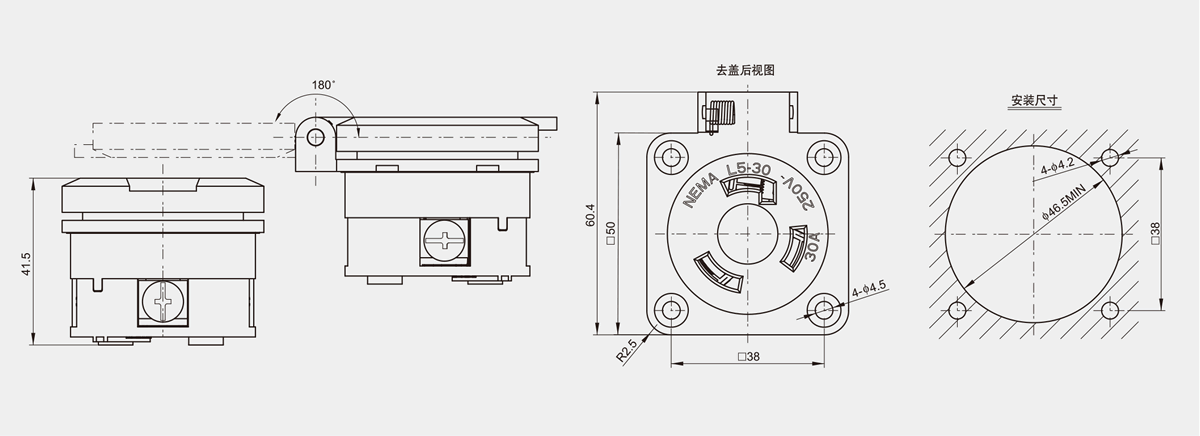 美式插座L5-30R帶蓋 所屬分類:美式系列 > 工業(yè)插頭、插座 13868759177 / 13868895688 / 13736999786 13868759177@163.com 聯系我們 技術參數 1、額定值:125VAC 30A; 125/250VAC 30A; 125VAC 20A; 2、接觸電阻:≤0.5Ω; 3、絕緣電阻:≥100MΩ; 4、耐電壓:2000VAC/min; 5、插拔力:≤15-93Nf; 6、電壽命:5000次;