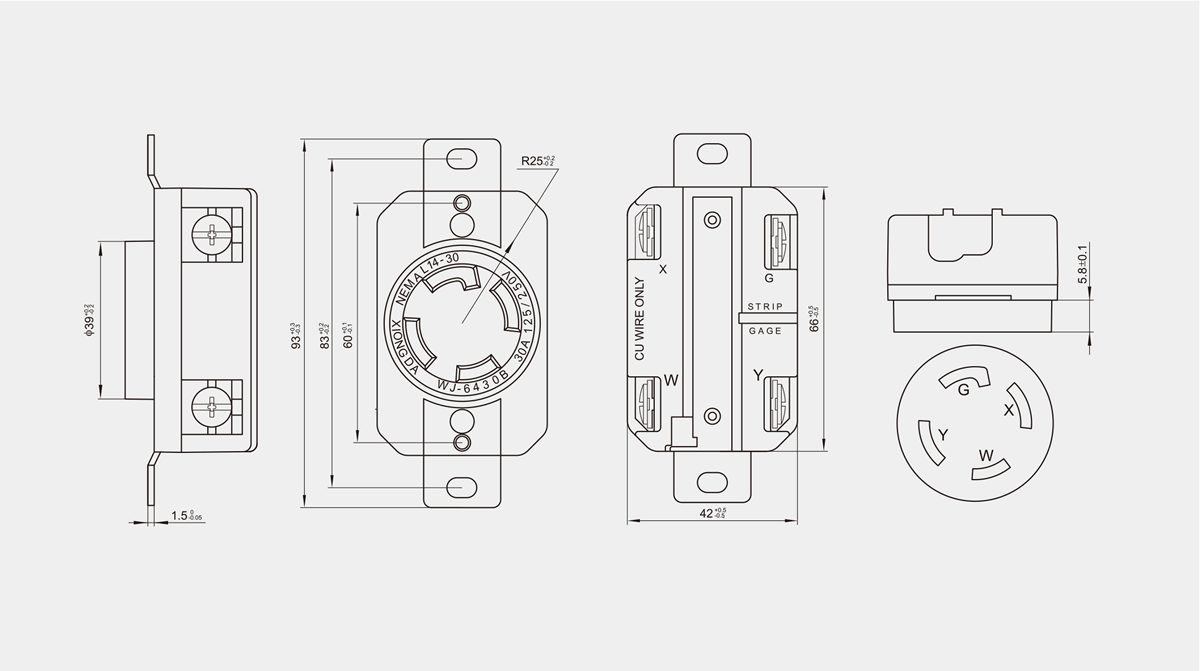 美式插座L14-30R 所屬分類:美式系列 > 工業(yè)插頭、插座 13868759177 / 13868895688 / 13736999786 13868759177@163.com 聯(lián)系我們 技術(shù)參數(shù) 1、額定值:250VAC 30A; 125/250VAC 30A; 2、接觸電阻:≤1Ω; 3、絕緣電阻:≥100MΩ; 4、耐電壓:1500VAC/min; 5、插拔力:15-130N; 6、電壽命:5000-20000次;