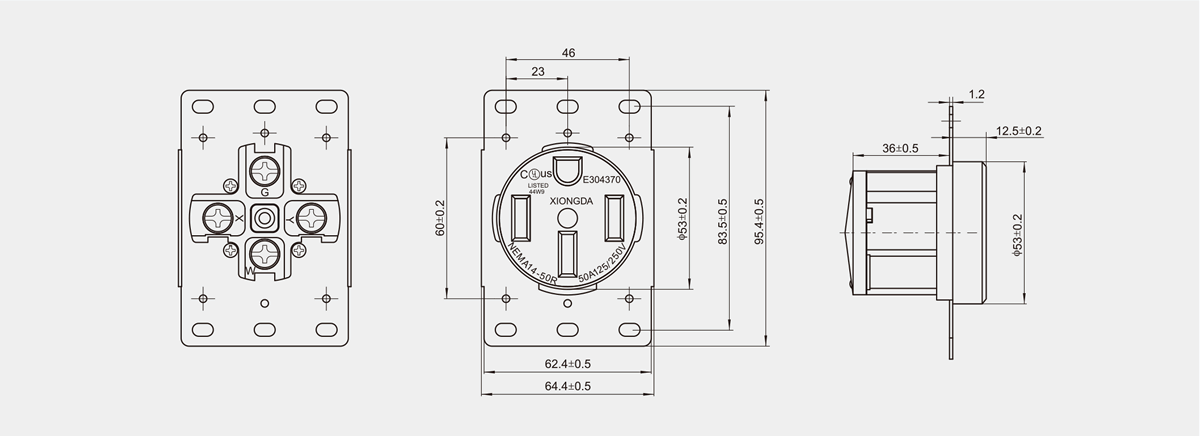 美式四孔插座NEMA14-50R UL 所屬分類:美式系列 > 工業(yè)插頭、插座 13868759177 / 13868895688 / 13736999786 13868759177@163.com 聯(lián)系我們 技術(shù)參數(shù) 1、額定值:125V/250VAC 50A; 2、接觸電阻:R1≤50MΩ; 3、絕緣電阻:R2≥500MΩ; 4、耐電壓:AC2500V(50-60Hz); 5、插拔壽命:20000次以上;