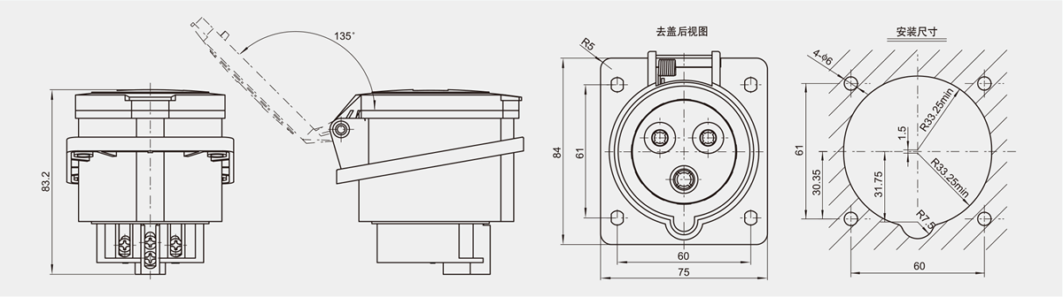 工業(yè)插座32A三孔斜 所屬分類:美式系列 > 工業(yè)插頭、插座 13868759177 / 13868895688 / 13736999786 13868759177@163.com 聯(lián)系我們 技術(shù)參數(shù) 1、額定值:220-250VAC 16A-6h; 220-250VAC 32A-6h; 2P+E/50-60Hz IP44; 2、接觸電阻:≤0.5Ω; 3、絕緣電阻:≥100MΩ; 4、耐電壓:2000VAC/min; 5、插拔力:50-200Nf; 6、電壽命:5000次;
